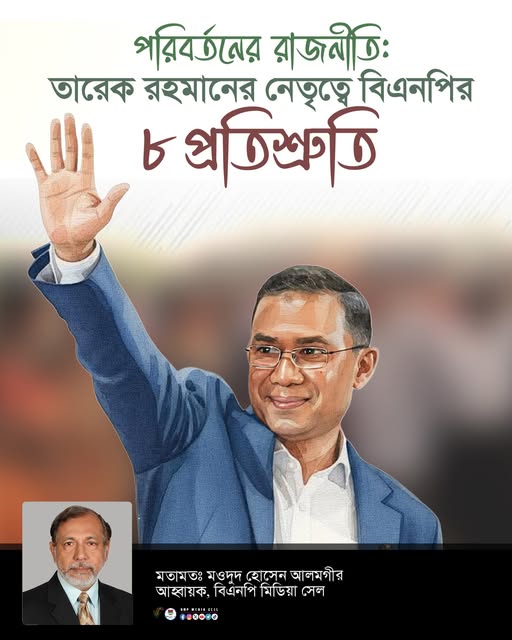 এটি নির্বাচনী প্রচারণায় একটি গুণগত পরিবর্তন আনবে, যেখানে ভোট বৈজ্ঞানিক যুক্তি, সমাধানের পরিকল্পনা এবং ভবিষ্যৎ জীবনের প্রত্যাশার ওপর ভিত্তি করে হবে। “ভোট দিলে কী পরিবর্তন আসবে” - এই প্রশ্নের স্পষ্ট উত্তর এখন ভোটারদের সামনে থাকবে। আর সেই উত্তর হলো - বিএনপি ভোট মানে জীবনে পরিবর্তন, জীবিকায় উন্নতি।